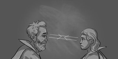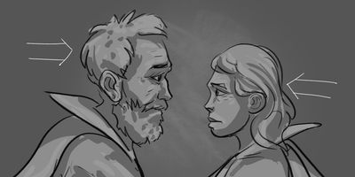 Glen's expression hints at his fear of God. Glenrose looks like she's seeing Him.