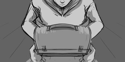Glen finds envelope. MCU (HANDHELD) - From the inside of the car.