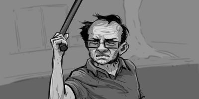 Glen finds a shovel and heads beneath the house. WIDE (STATIC/DOLLY) - Slow push in. * Important to match this with the pervious shot.