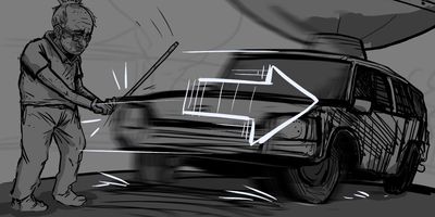 Suddenly soapy water is squirted across the windscreen. POV (HANDHELD) - From Glen’s perspective. * Only ever revealing a little bit of Darren’s face. Not the whole lot! Leave the viewer wanting more.